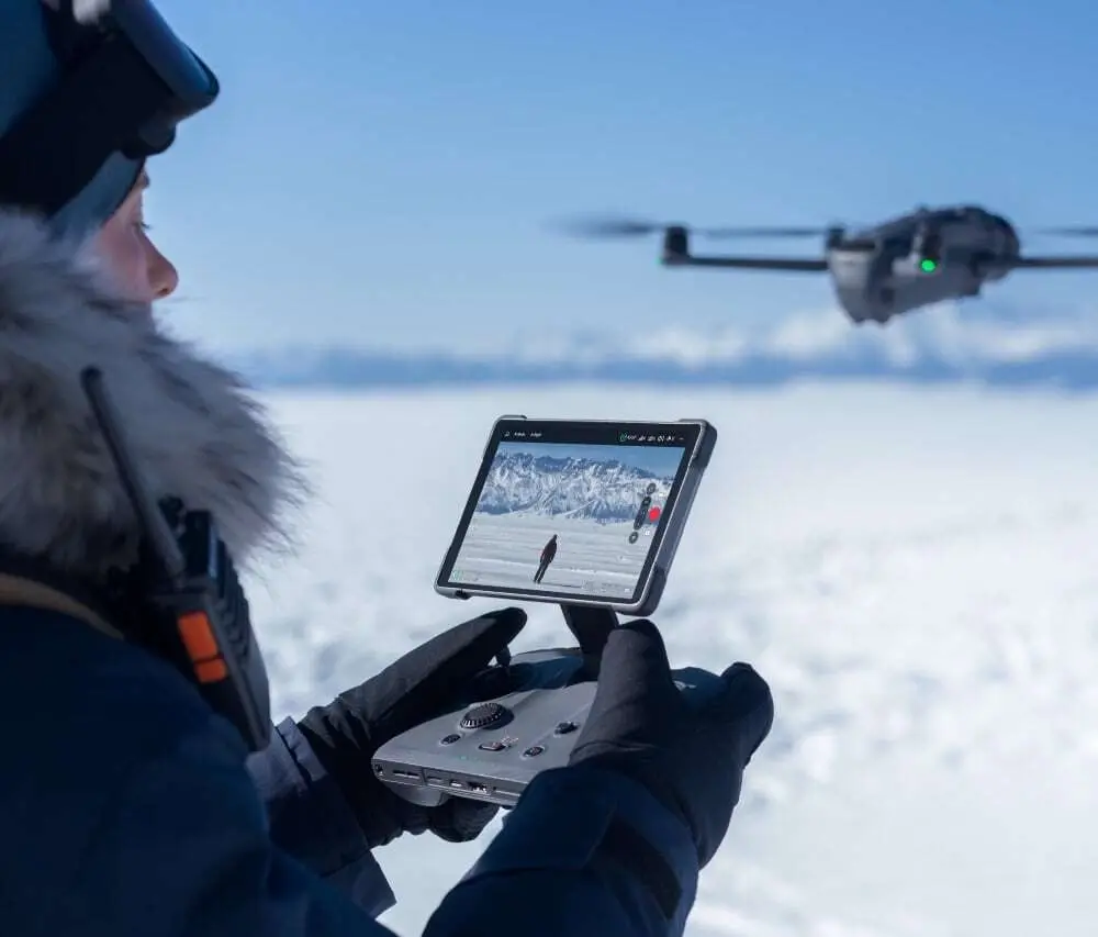 Оснащен системой передачи видео DJI O4+, которая обеспечивает сверхдальнюю передачу 10-битного HDR-видео на расстояние до 30 км (18,6 миль).